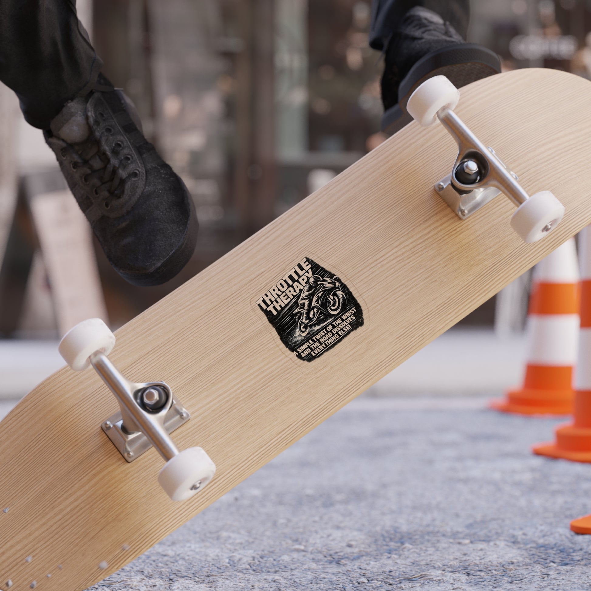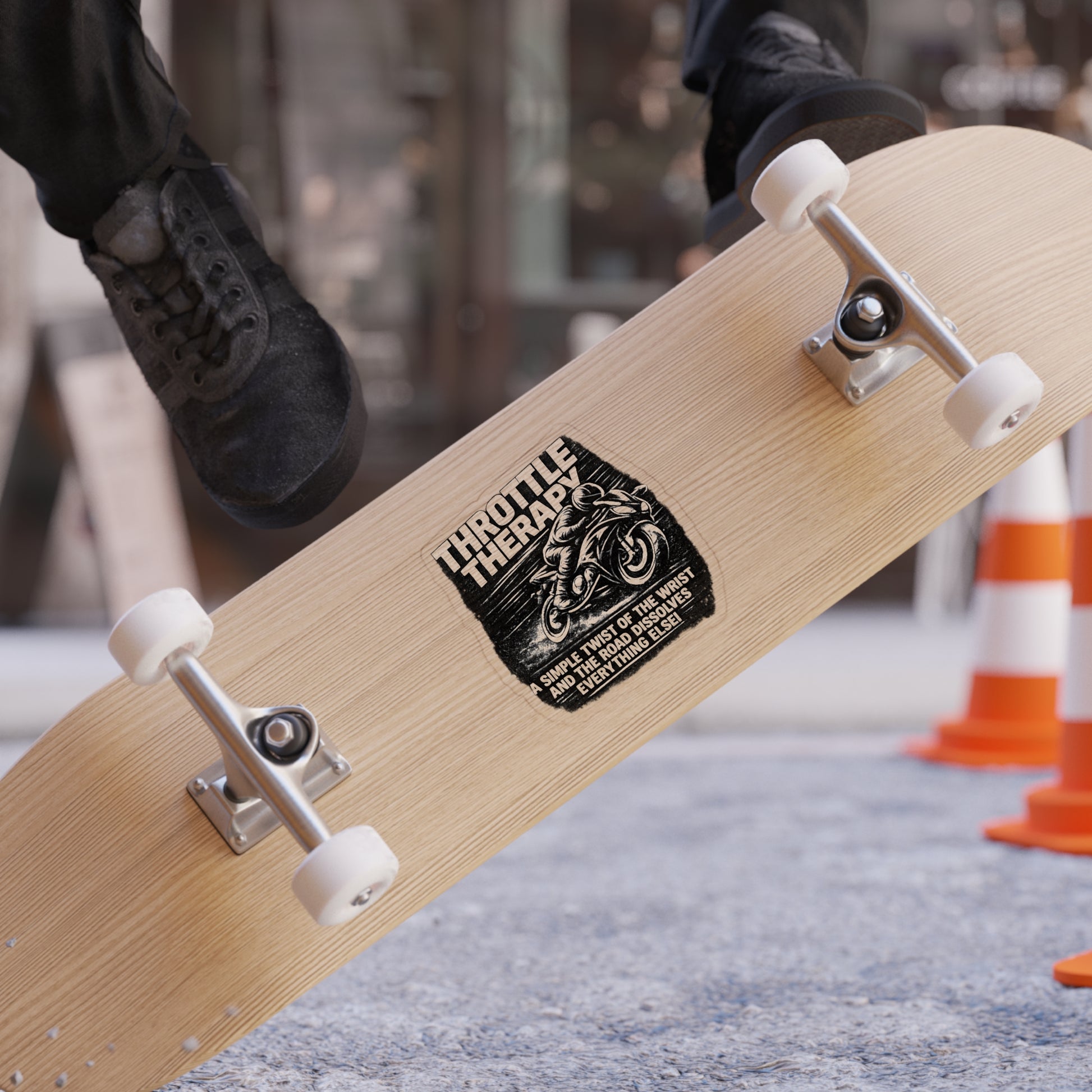Rugged, weather-ready die-cut stickers made for riders and road lovers. This transparent outdoor sticker features a high-contrast, vintage motorcycle illustration with the bold headline “THROTTLE THERAPY” and the line “A SIMPLE TWIST OF THE WRIST AND THE ROAD DISSOLVES EVERYTHING ELSE!” The water-resistant vinyl and matte UV laminate stand up to rain, sun, and scrapes, so you can mount it on helmets, toolboxes, gas tanks, vans, or your favorite travel mug. The design’s gritty, monochrome look reads like a badge of calm for anyone who finds clarity on two wheels — it ages with character rather than fading away.